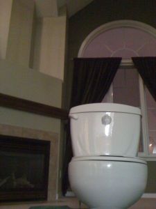 To start, I set the water pressure way to high, I had the shower curtain positioned improperly, and I changed the height of the shower head. Those three things resulted in water being sprayed on the toilet paper and all over the floor.