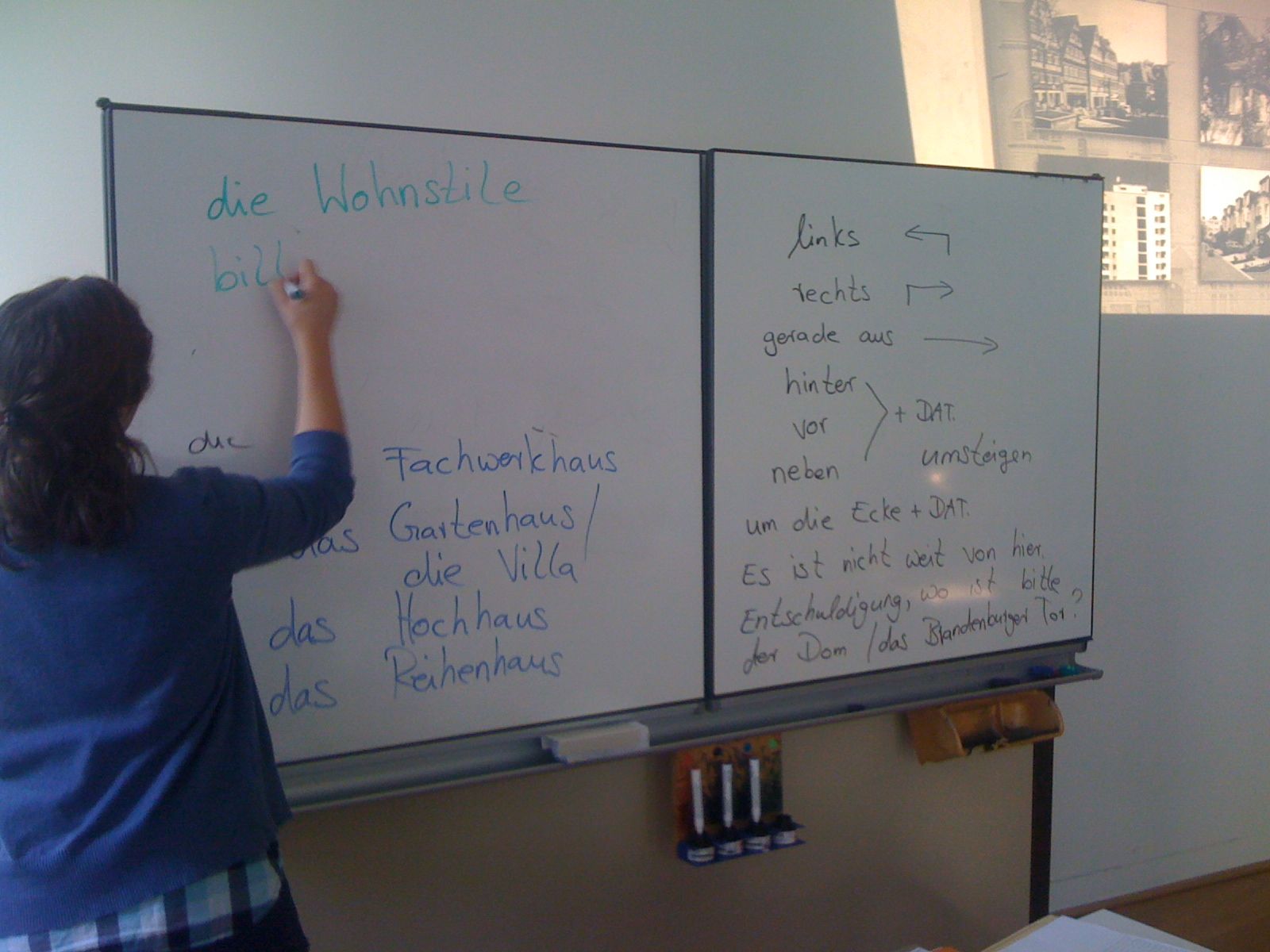 By the beginning of the second hour I start to think those robots in the Matrix were on to something. The classroom starts to get really get warm before the instructor opens the windows. It’s those cool German windows with the handle that locks the window closed when in the down position, opens it wide like a regular door in the middle position and opens at the top when in the up position. A very clever design. I’m going to see if I can bring back a kit and make one at home. Now that the windows are all the way open the room cools down to a decent temperature.