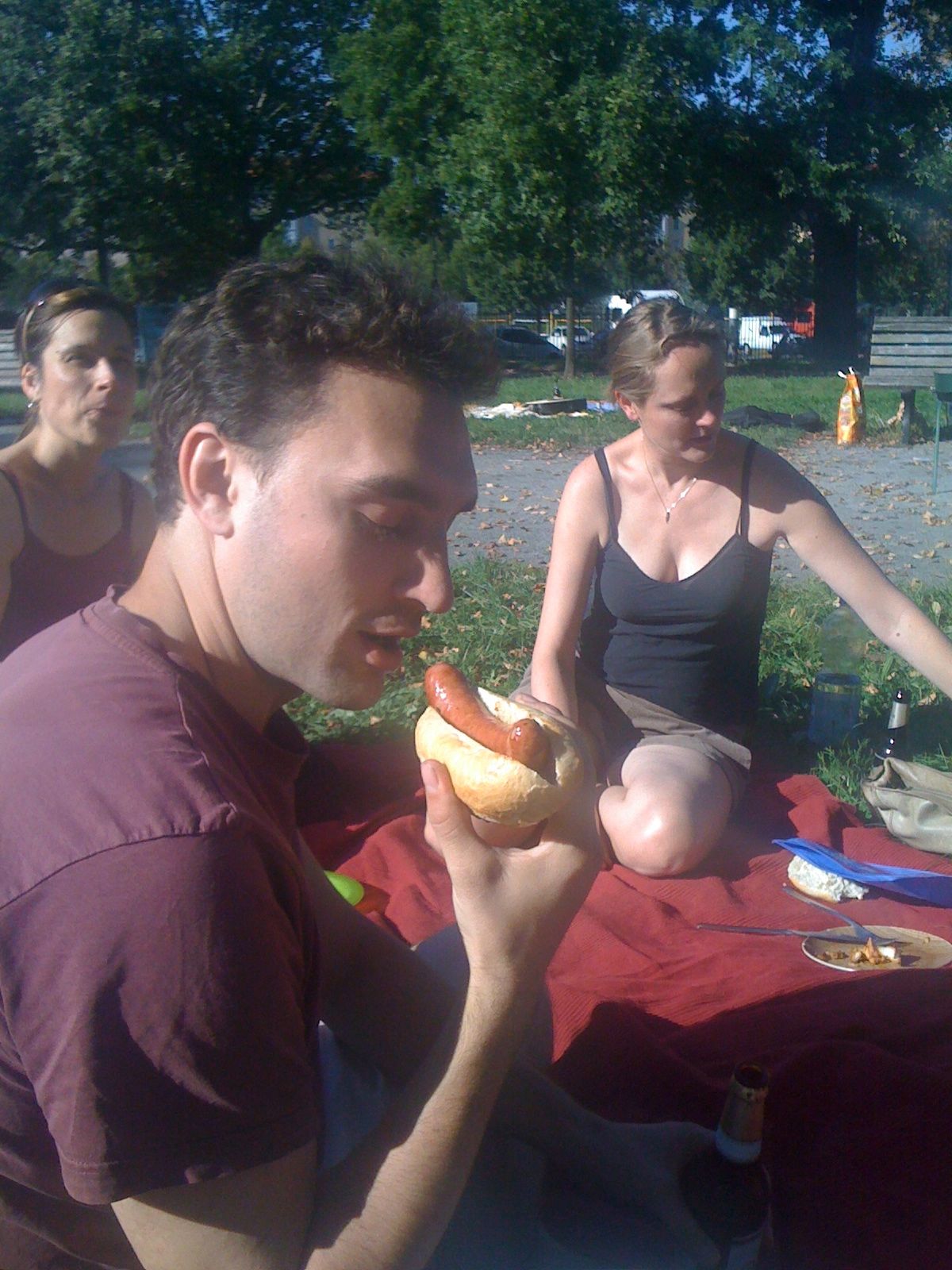 On Thursday I was invited to a BBQ in the park. On Sunday at 13:00 I met up with Bénédicte and two of her friends, Janet and Cindy (Three’s Company just wasn’t the same after Suzanne Somers left) and we went to the Volkspark Friedrichshain (M5, M6, M8, or you can just walk). I had gone shopping the night before and purchased two sausages and two sausage buns to eat at the BBQ. We picked up some beer along the way.