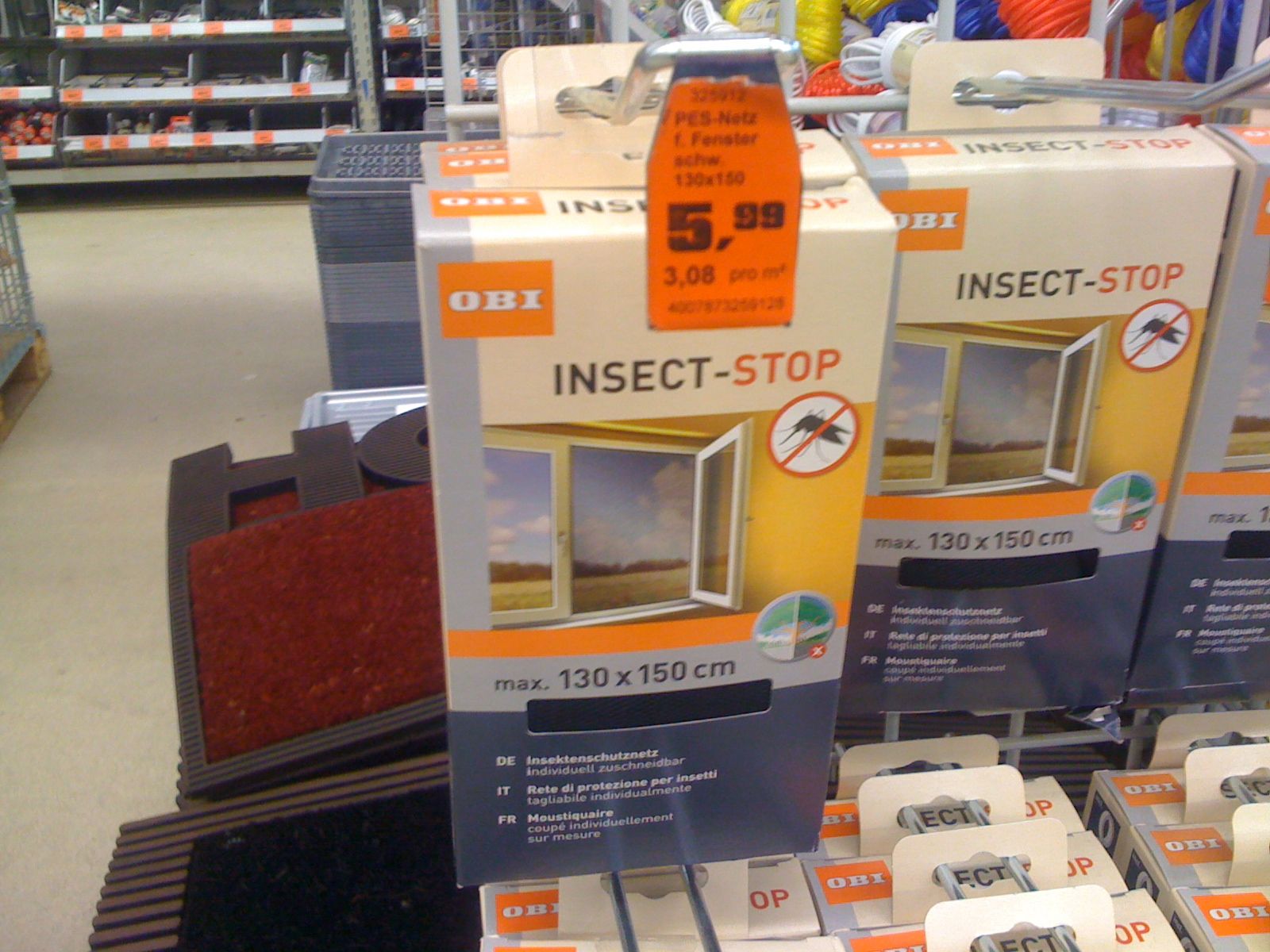 This morning before class I go for my soon-to-be daily visit to the Obi (German Home Depot – they even have the orange). I’m heading past the Insect-Stop
