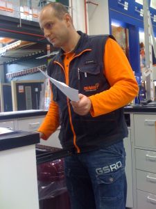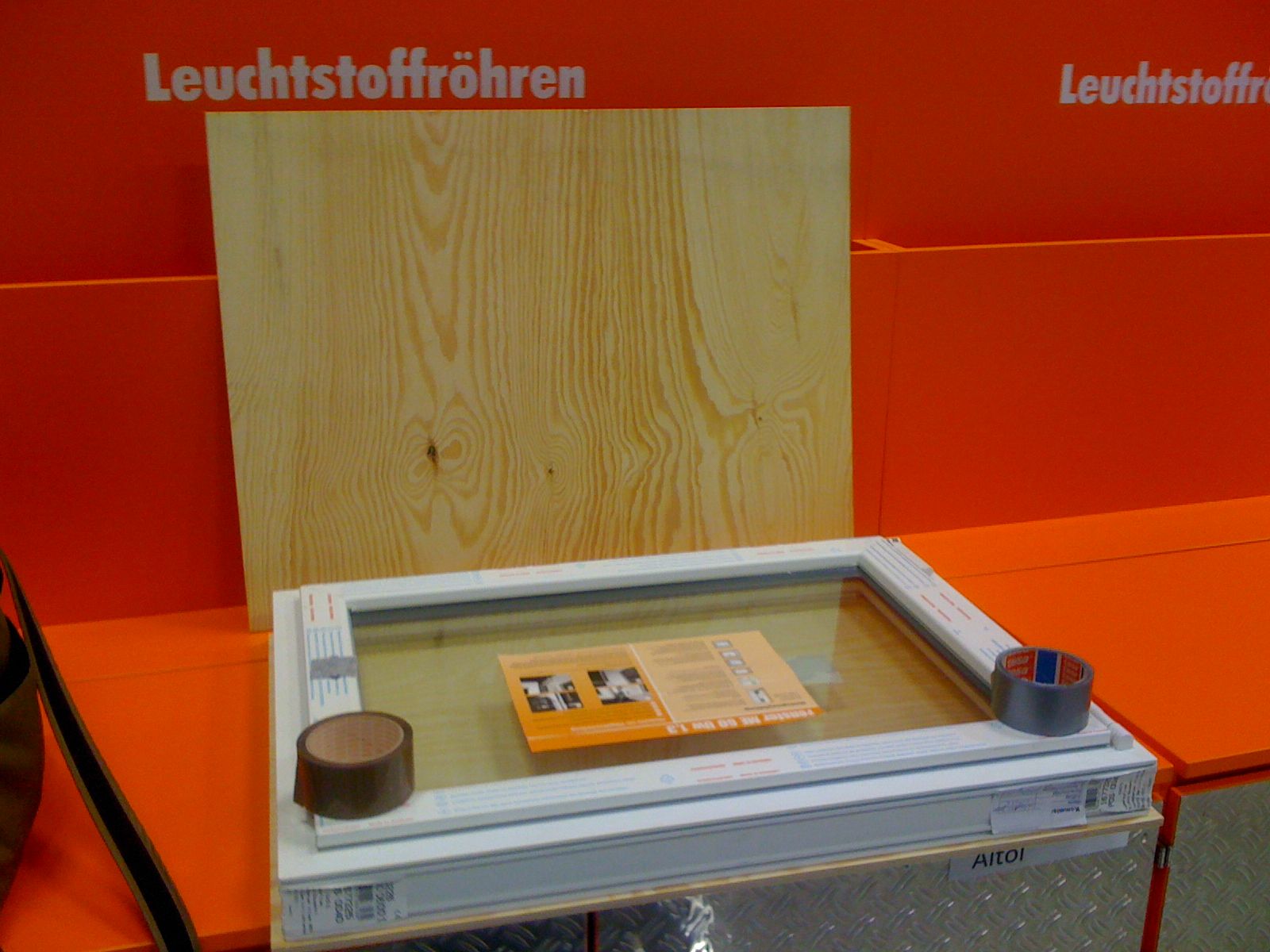I manage to make it to the Baumarkt just after 10:00 – when I get there I notice that they open at 08:00 and not 10:00. Oh well, next time. I grab a cart and go pick up the window. I ask the dude if he can cut me two pieces of wood 82 x 62 cm. The lesson from this exchange is to check the local cost of the merchandise. I’d been planning all along to use some plywood to protect the window. At the Home Despot in Canada I would have simply gone to where they have the saw and grabbed a couple of scrap pieces for about four dollars. But this is Germany so dude sells me two pieces of 8 mm plywood that cost – get this – twenty-one Euros. Unbelievable. This window purchase is quickly climbing into the non-profitable zone.