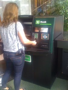 For example, the GF needed to get some money to purchase goods and services so she went to one of the many non-Canadian banks one can find all over the city. American financial institutions have been all over the news as of late and we wanted to see what all the hubbub was about.