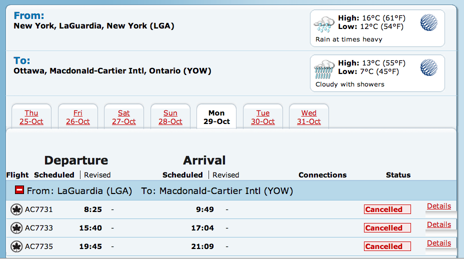 I don’t know what to do. The GF and I are stuck here in New York. Stranded. Our flight on Monday has been cancelled.