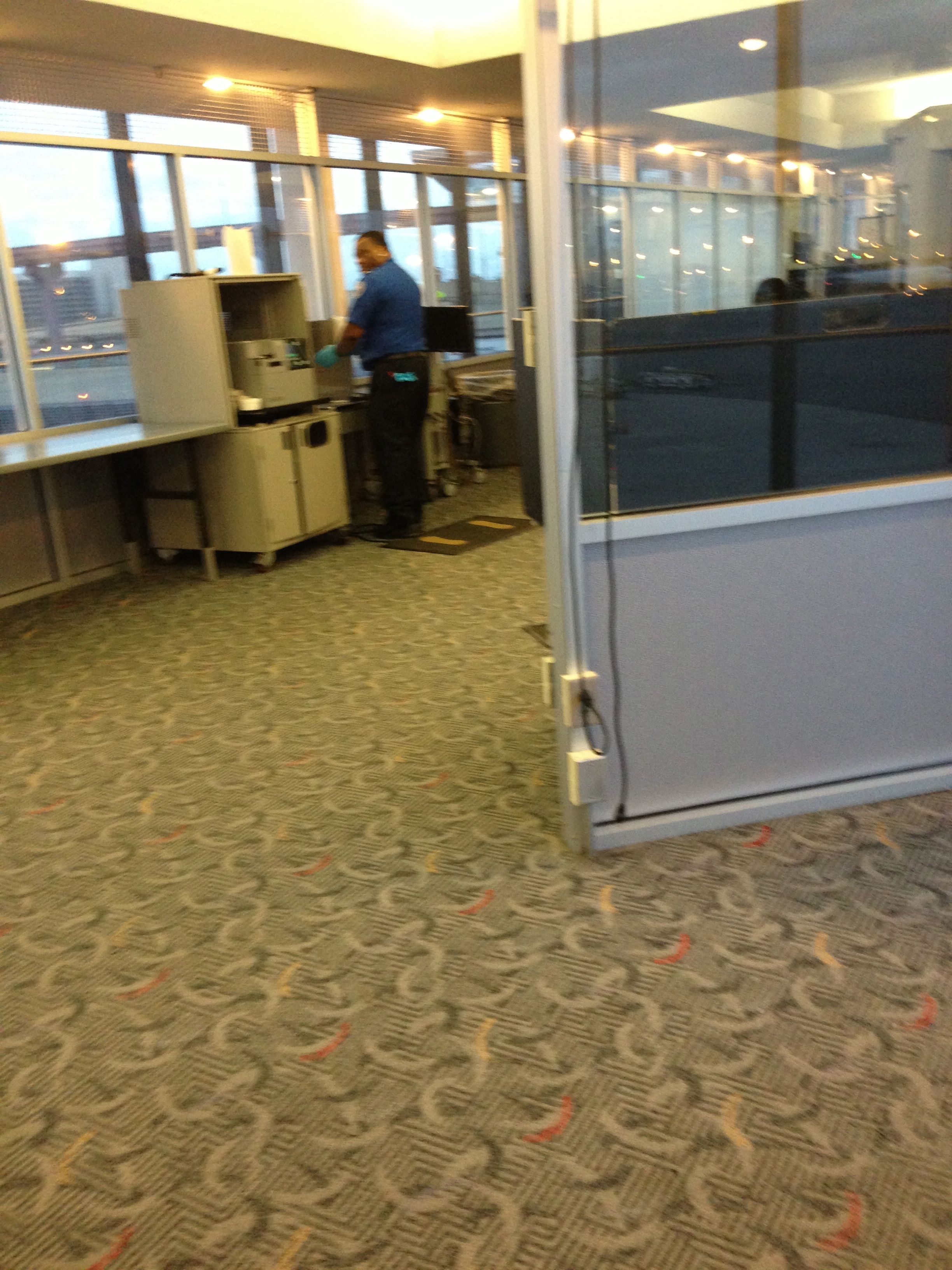 Turns out there is and I opt to take it – I already have superpowers and passing through the machine an even number of times takes them way (I’m not going to fall for that one again). They call a specialist over and after waiting for a couple of minutes he walks me around the metal detector (wha?) and takes me off to the side to give me my pat-down. In full view of the other customers he proceeds to do his thing. After my request to have more time spent on my frontal area is denied, he does a quick swab of my bag to test for explosives. He sends me on my way when it comes back negative (thank God – I’m always afraid they’re going to find something when they test my bag).
