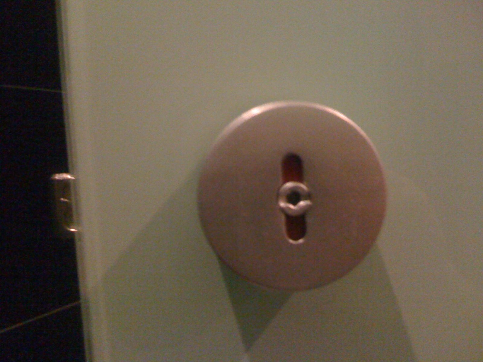 So what we end up with is a situation where the person in the washroom is interrupted by the attempted door opening and the person waiting is now acutely aware of the unnecessary pressure he’s placed on the occupant. This is all compounded by the fear that the door has not locked properly and the mere act of turning the knob will expose the activities therein to everyone else in the cafe. And worst of all, I have to sit here and be subjected to this Sisyphean ordeal that could be solved by the most basic of technologies. Here’s a picture of the German solution to the problem.