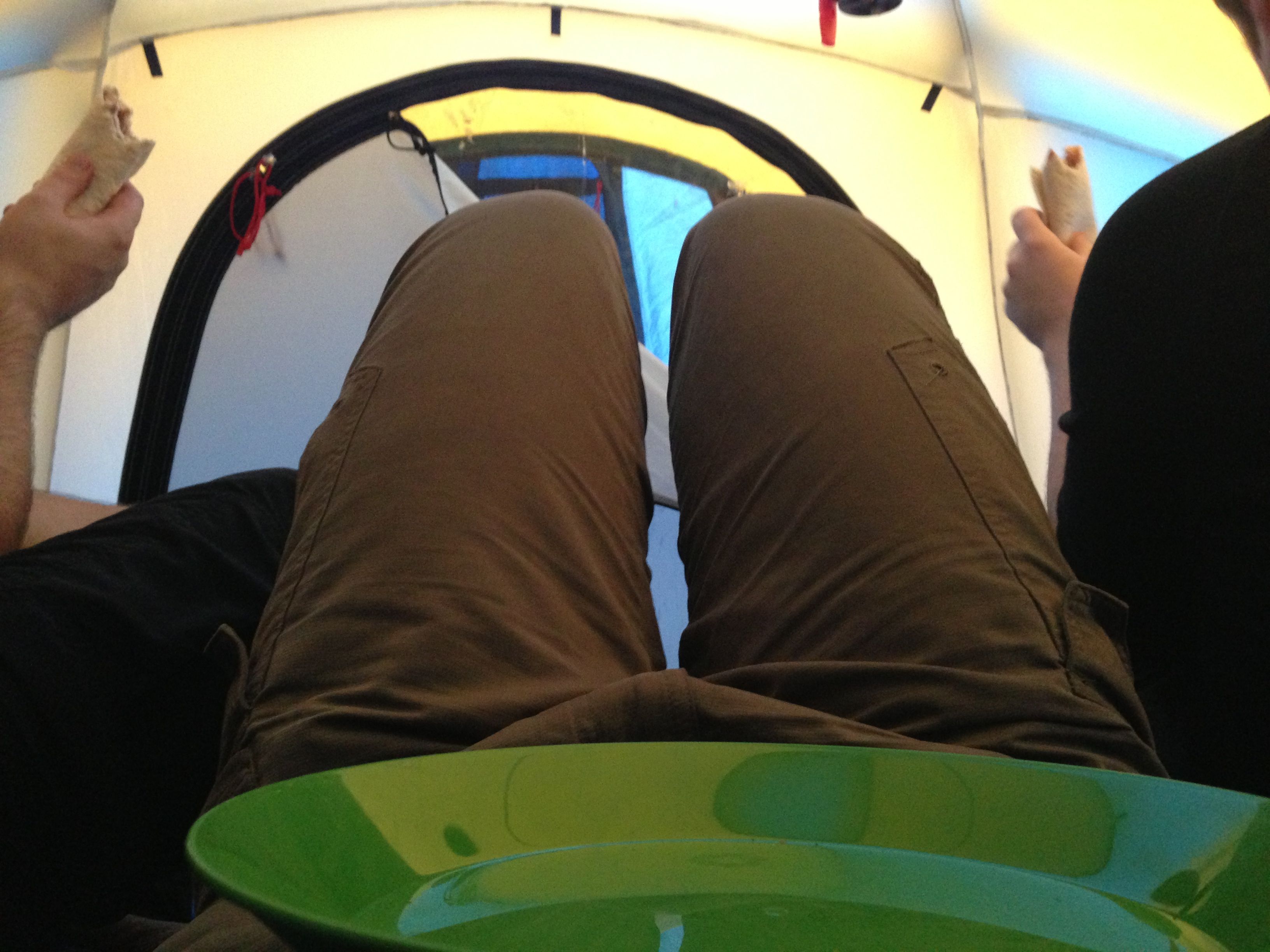 It rained for most of the evening so we just stayed in the tent until bedtime. Just three guys enjoying some quality time crammed into a shelter that is so small one cannot even stand up in it.