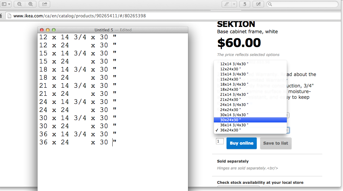 Your Facebook page does not allow for regular folk to post pictures (and I’m too lazy to write up a description) so here is an idea to help you improve your website. Suggest you make the drop down list of your cabinets dimensions more readable. This image will show you what I mean.