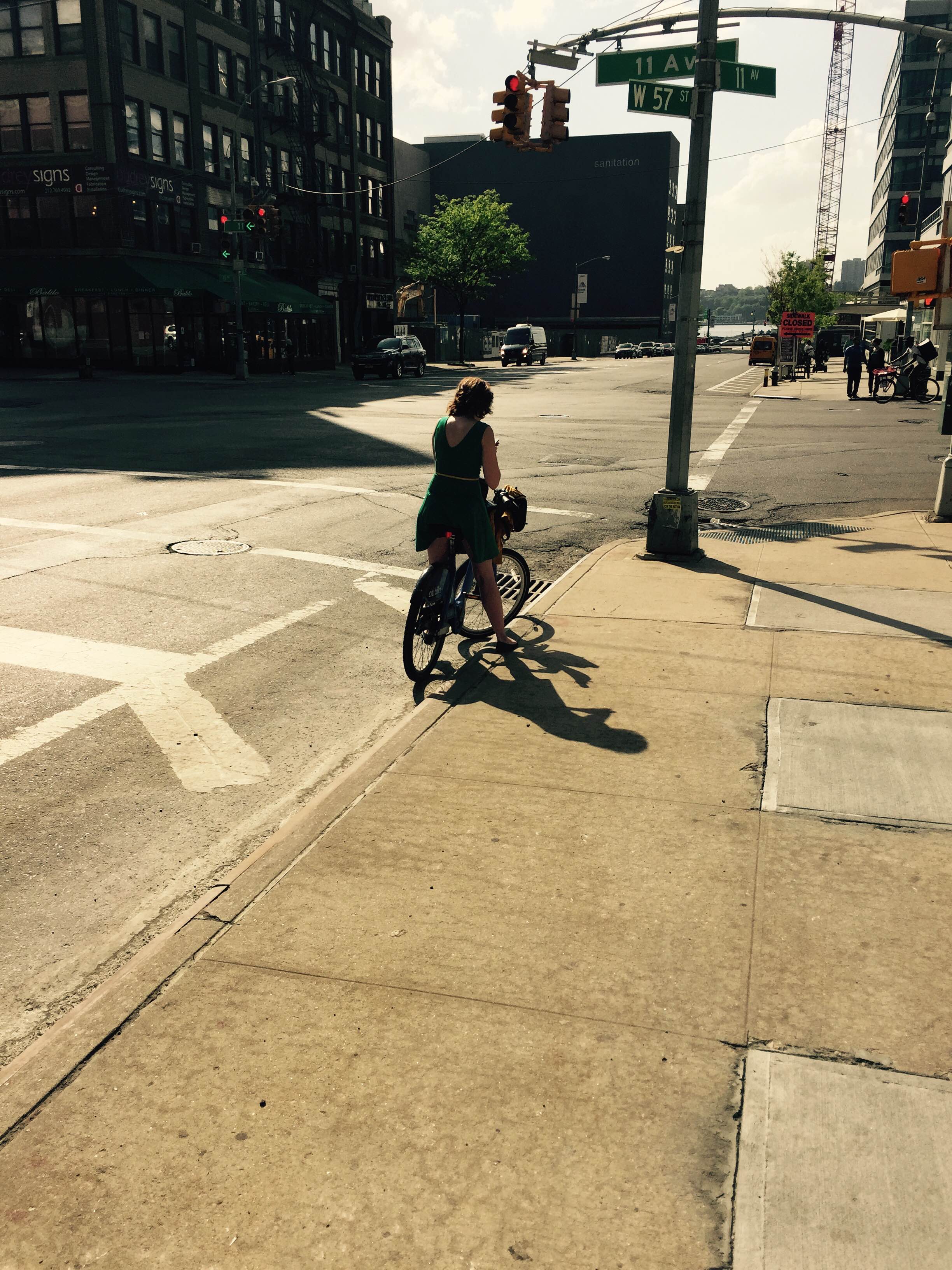 I immediately turned to look and across the street a woman was speeding by on her bicycle and her mobile phone had fallen off her person and was sliding along the road behind her. Glass and plastic scratched and scraped on the disgusting New York asphalt.