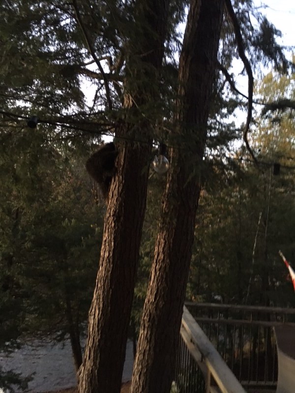 Then like five minutes later we saw what appeared to be a rather large raccoon lumbering down the side of the tree.